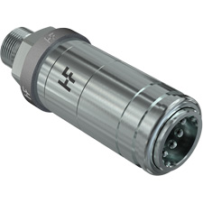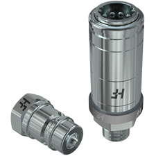 大流量插拔连接快速接头,阳接头可带残压连接,并且拥有应急断开功能。可以直接安装于多路阀油口或者硬管。符合ISO7241-1-A系列标准,流量达到250L/min