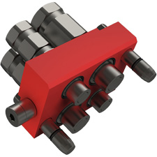 应用于高压42MPa的多路快速接头,2路1/2",2路3/4"。模块表面红色,接头镀锌镍涂层。